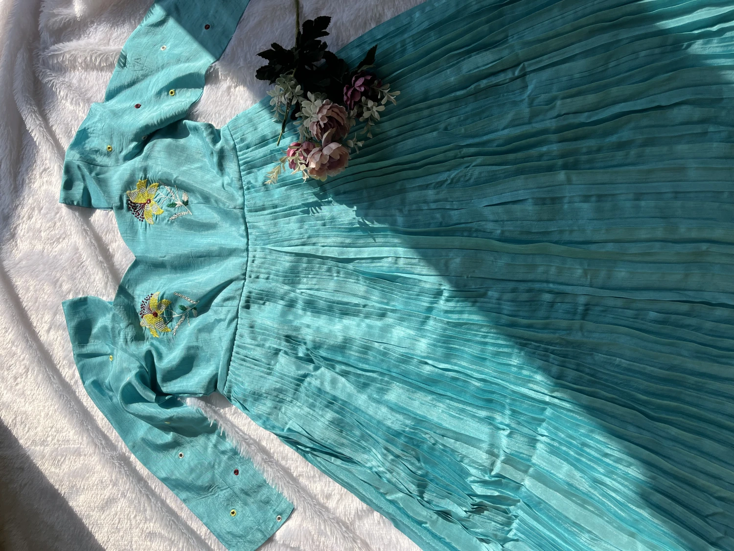 AN202-Semi raw silk beautiful hand embroidery frock